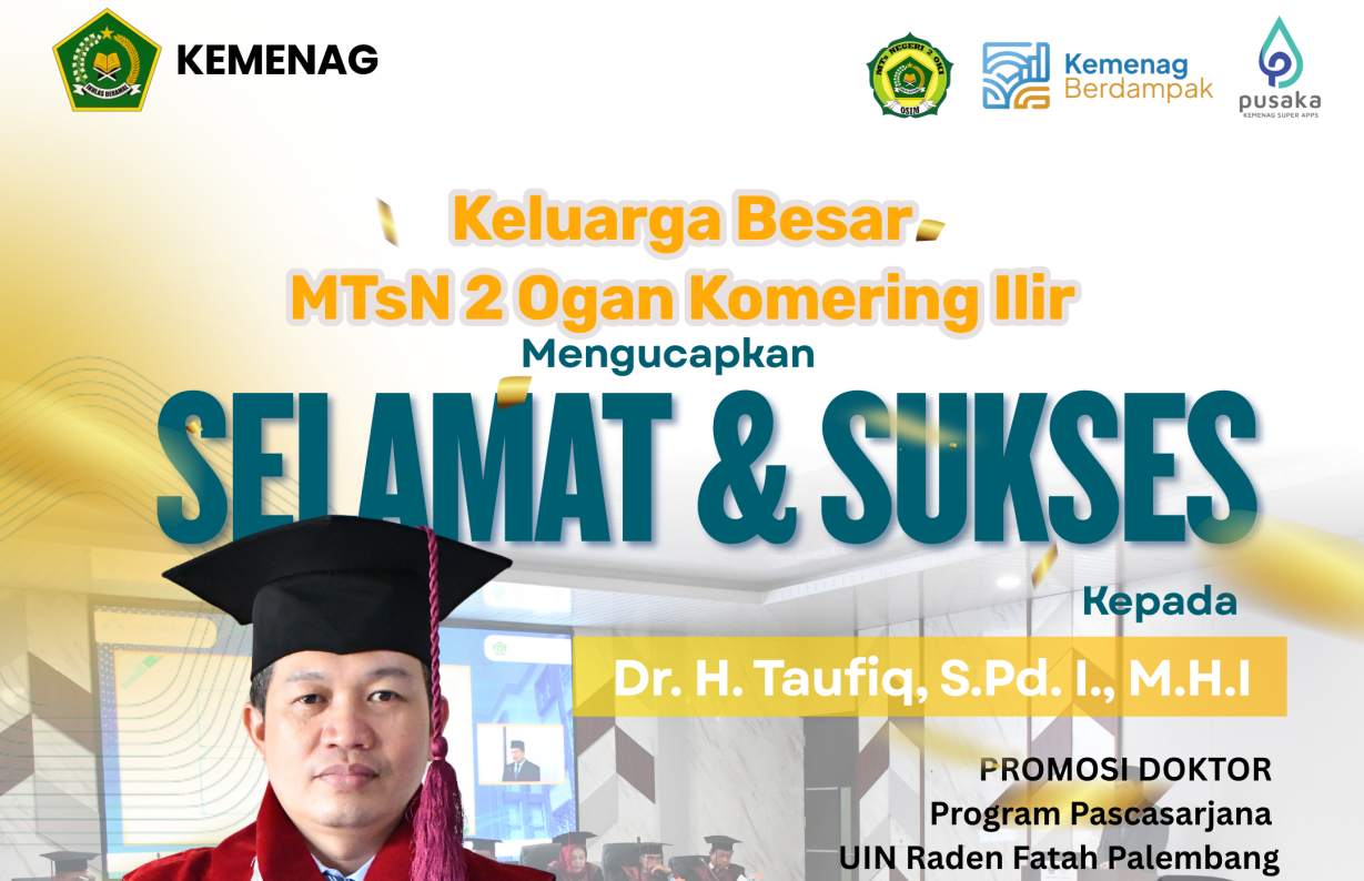 Keluarga besar MTs Negeri 2 Ogan Komering Ilir mengucapkan selamat atas Promosi Doktor untuk bapak Dr. H. Taufiq Fathir, S.Pd.I.,…