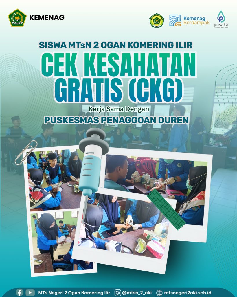 Siswa MTs Negeri 2 Ogan Komering Ilir, kerja sama dengan Puskesmas Penanggoan Duren, Cek Kesehatan Gratis yang dilaksanakan di MTsN 2 OKI, 22 April 2026. adapun tujuan kegitan ini adalahdeteksi dini masalah kesehatan siswa, mencegah penyakit, mendukung pretasi belajar, edukasi hidup sehat, memantau tumbuh kembang siswa #humas #kemanagsumsel #kemenagoki #mtsn2oki